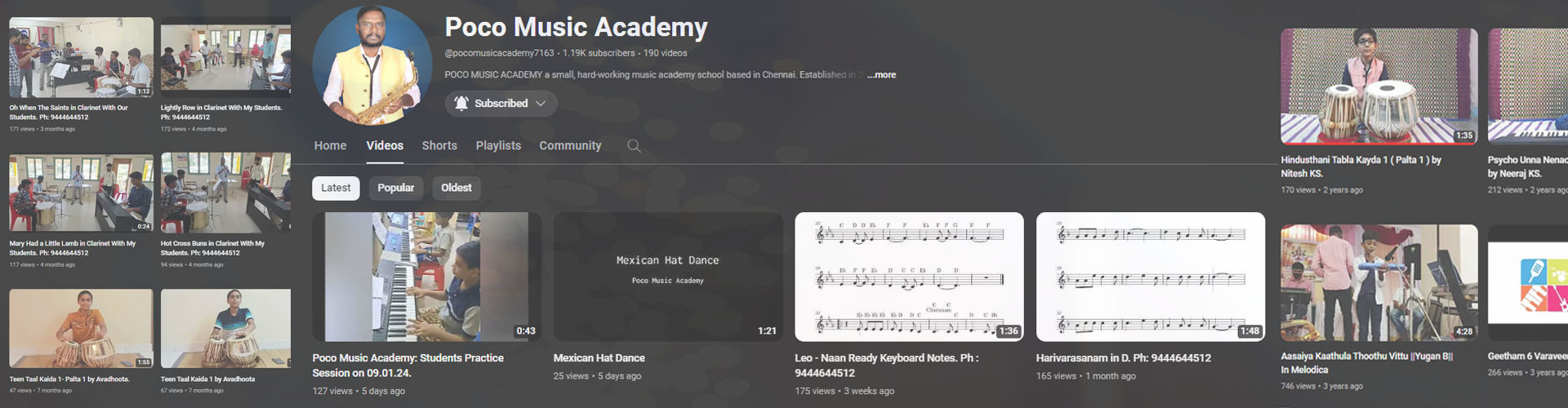 Best place to learn all types of Instrument and singing. POCO Music Academy, is registered music institute with Trinity College london to send the student for the exam from the same Trinity College London, theory and practical.